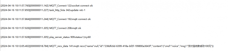 {"cmd":"voice","msg":"支付宝收款成功100元"}