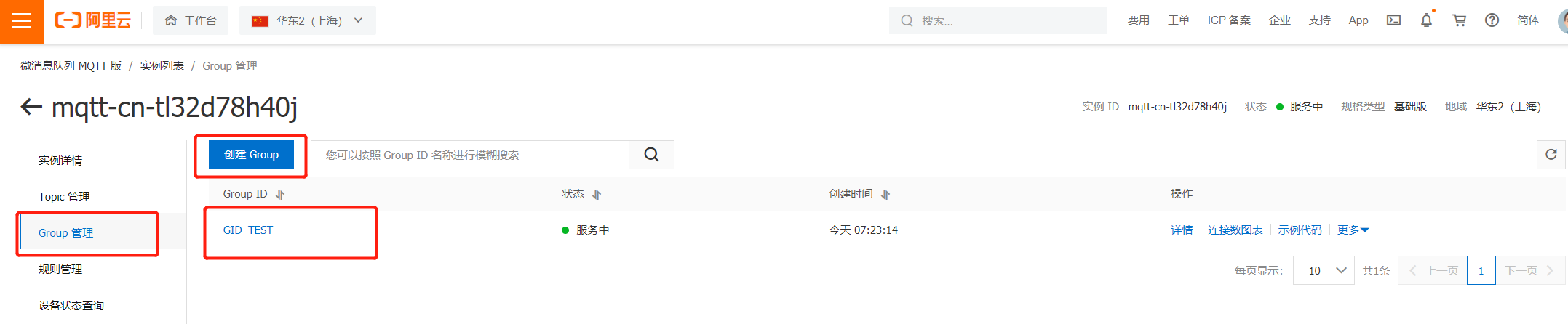 点击左侧的“Group管理”,点击“创建Group”,这里我先先建一个Group为GID_TEST的例子,如下图所示: