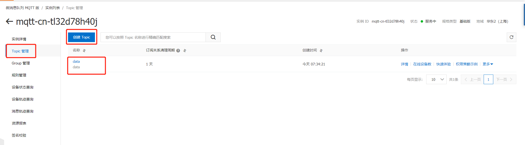 在Topic管理界面,选择“快速体验”,如下图所示: